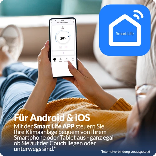 Dieses moderne Split-Klimagerät von HANTECH bietet eine effiziente Kühlung und Heizung für Räume bis zu 30 m². Dank der integrierten WLAN-Funktion lässt sich das Gerät bequem per App oder Sprachsteuerung bedienen.
